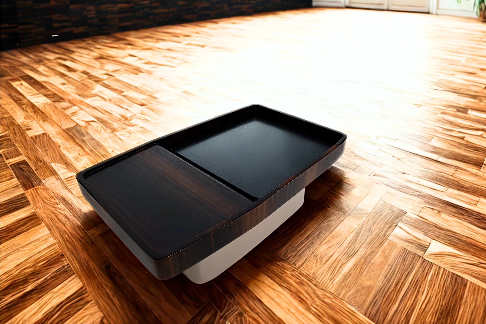 EBENE IVOIRE — Table basse ronde contemporaine en chêne brun foncé et marbre beige égyptien